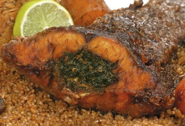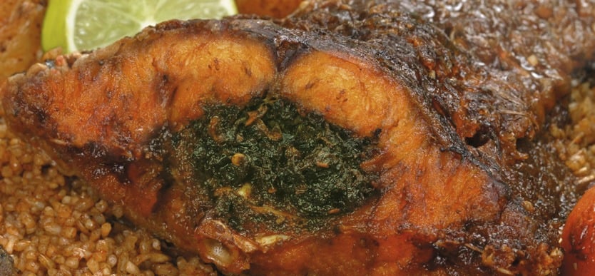 Sauce onctueuse à la pâte d’arachide et légumes mijotés.